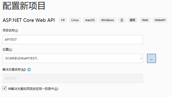 我們在電腦上建立以下目錄D:\WEB\ID4\APITEST