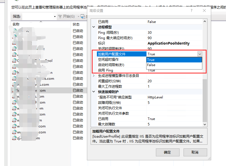 就這樣簡(jiǎn)單的幾個(gè)字,再也沒有多余的信息了。經(jīng)過一陣查詢,用以下方法解決了問題。找到應(yīng)用程序池,點(diǎn)開高級(jí)設(shè)置,如下圖,找到下面的配置