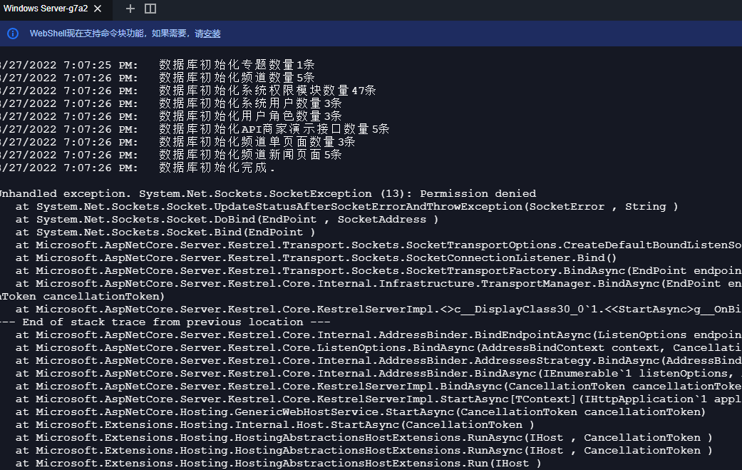 8/27/2022 7:07:26 PM: 數(shù)據(jù)庫初始化完成.